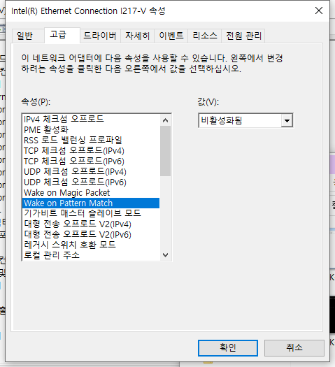 다른 글에는 wake on magic packet , wake on pattern match 를 둘다 활성화 하라고 하는데