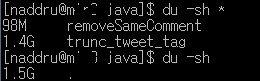 du -sh * : 한단계 서브디렉토리 기준으로 보여준다.