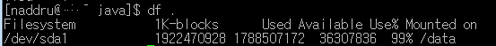 df -k : 킬로바이트 단위로 현재 남은 용량을 확인