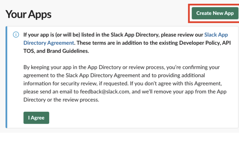 1. 슬랙 api 홈페이지로 가서 Your Apps 를 누른다. (로그인 부터 해야함!)