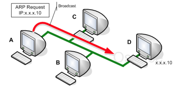 - 이를 위해 해당 네트워크 내에서 ARP를 브로드 캐스팅하는데 해당 IP주소를 가지고 있는 노드는 자신의 MAC 주소를 응답, 즉 유니캐스트한다.