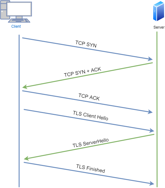 EX> 1> 서버에게 전화를 걸고, 2> 서버는 해당 전화를 확인하고 전화를 받습니다. 3> 그리고 전화를 건 사람 "여보세요"라고 대답한다.- 하지만 지금 하는 요청은 HTTPS 요청으로 서로 암호화 통신을 위한 TLS 핸드쉐이킹이 추가되어 이를 통해 서버와 클라이언트는 암호화 통신을 진행한다.