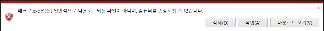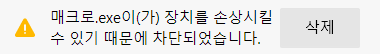 매크로.exe이(가) 장치를 손상시킬 수 있기 때문에 차단되었습니다.