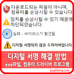 ※ 실행파일(exe), 컴퓨터 드라이버 프로그램 디지털 서명 해결 방법
