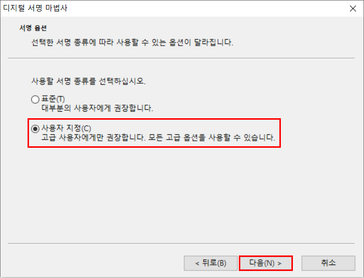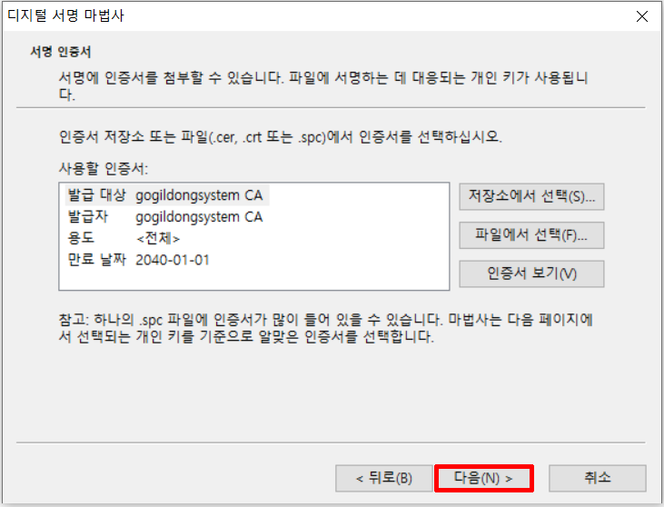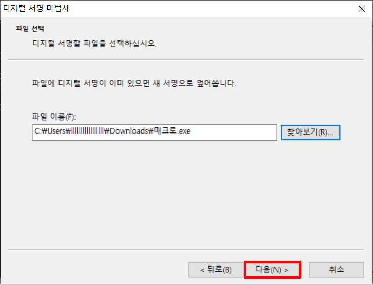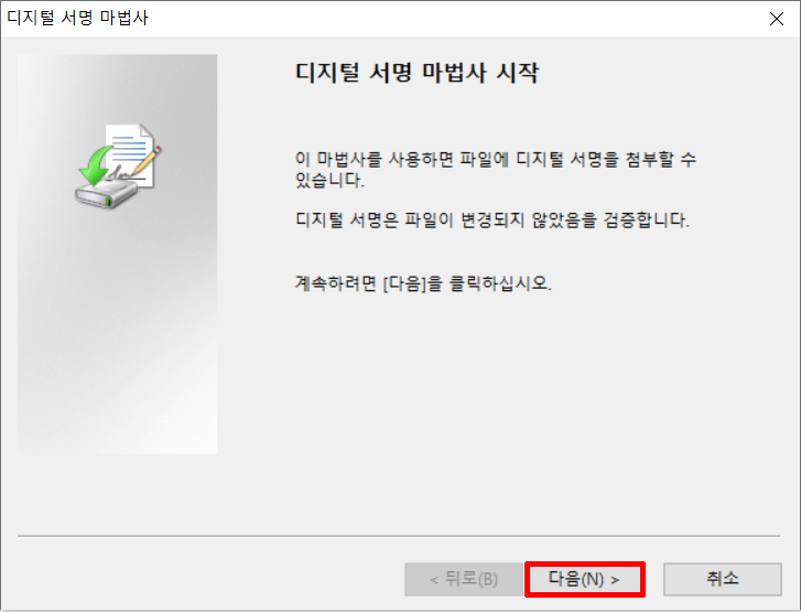 ※ 파일에 디지털 서명을 첨부하기