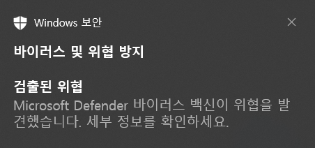 컴퓨터 윈도우 백신 '마이크로소프트 디펜더'가 바이러스로 인식하여 차단합니다.