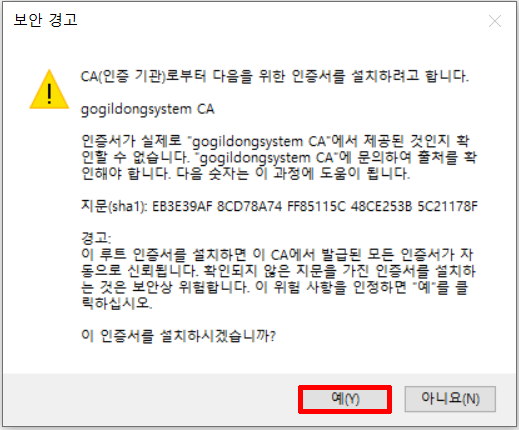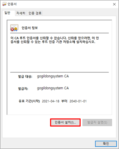 ⑤ 인증서 설치를 누르세요.