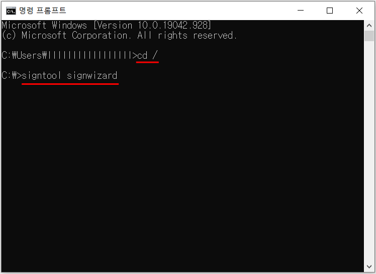 signtool signwizard 라고 입력하면 디지털 서명 마법사 시작됩니다.