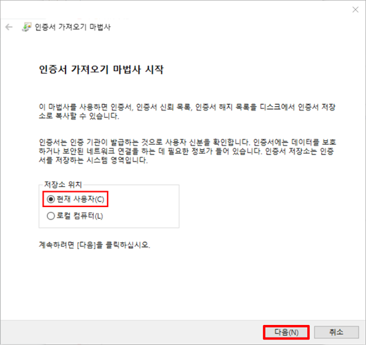 ⑥ 현재 사용자 선택하고 다음을 누르세요.