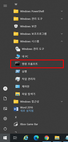 ② 시작에서 Windows 시스템에서 '명령어 프롬프트' 실행하세요.