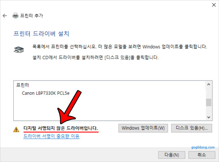 그래픽카드 드라이버, 복합기, 프린터 드라이버 설치 오류 해결 방법은 서명입니다.