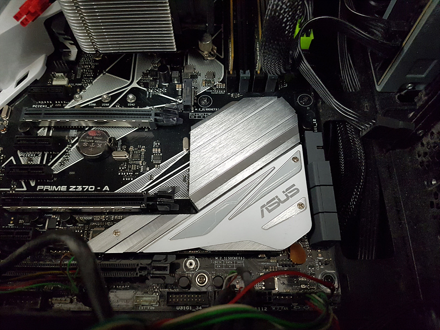 M.2_1 소켓이 있는 자리에 설치하기 위해서는 방열판을 떼어야 한다.