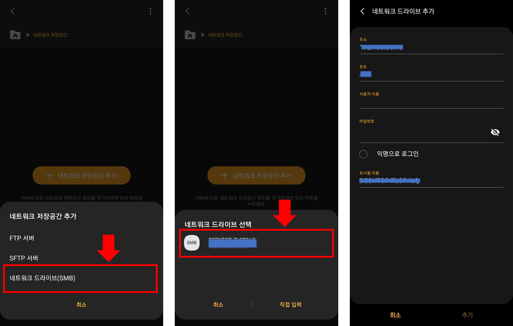 '네트워크 드라이브(SMB)'를 선택하면