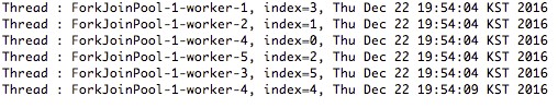 ForkJoinPool 생성자에 Thread 개수를 지정하여 사용할 수 있으며, 지정한 수만큼 새로운 Thread가 생성되지 않고 처리되는 것을 확인할 수 있습니다.