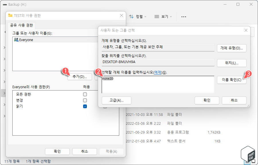 02 Windows 11 공유 폴더 생성 및 권한 부여