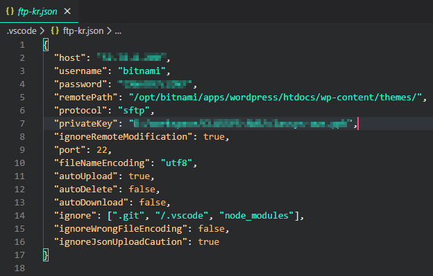 - ftp-kr.json 파일에 다음과 같이 입력한다.