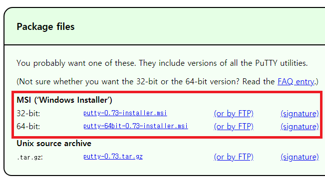 - putty를 다운받는다. (패키지로 받는다.)